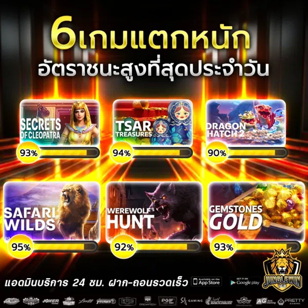 สิ่งที่ทำให้สายปั่นหลงรักและเทใจให้ที่นี่ ก็คือชื่อเสียงเรื่องความแตกหนักแบบไม่เกรงใจใคร คำว่า "สล็อตแตกบ่อย" ไม่ใช่แค่คำโฆษณาชวนเชื่อ แต่มันคือประสบการณ์จริงที่สมาชิกมากมายต่างการันตี ไม่ว่าคุณจะเป็นมือใหม่หัดกดหรือเซียนเก๋าเกมที่ผ่านสังเวียนมาเยอะ ก็สามารถทำกำไรจากที่นี่ได้ไม่ยากเย็น ด้วยค่า RTP ที่ปรับจูนมาให้สูงกว่ามาตรฐานตลาด ทำให้โอกาสเข้าฟีเจอร์ฟรีสปินหรือได้รางวัลใหญ่มีมากกว่าที่อื่นหลายเท่าตัว ลองจินตนาการถึงตอนที่หน้าจอขึ้นคำว่า Big Win รัวๆ สิครับ มันคือความฟินระดับสุดยอดที่หาไม่ได้จากเว็บเอเย่นต์ทั่วไปแน่นอน นอกจากนี้ตัวเกมยังมีฟีเจอร์ตัวช่วยมากมายที่ทำให้การชนะรางวัลเป็นเรื่องกล้วยๆ ไม่ว่าจะเป็น Wild ที่มาบ่อย หรือ Scatter ที่เข้าแบบไม่ต้องลุ้นเหนื่อย ใครที่เคยผิดหวังจากเว็บเกลือๆ มาก่อน ขอให้ลองเปิดใจดูสักครั้ง แล้วจะรู้ว่าการทำเงินแสนเงินล้านมันไม่ได้ไกลเกินเอื้อมเลย โดยเฉพาะที่ JUNGLEWIN168 แห่งนี้ที่พร้อมเปย์หนักจัดเต็มให้กับทุกคนที่กล้าเข้ามาล่ารางวัล